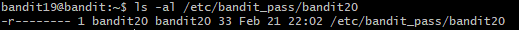 → cat 을 사용해서 bandit20 권한을 이용하여 패스워드 파일 읽기