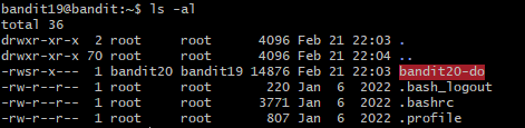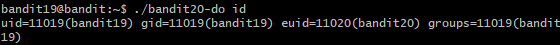 ( 현재 로그인한 계정은 bandit19 지만, bandit20 의 계정의 권한을 빌려서 쓸 수 있다. )