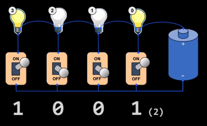 - 2번과 1번은 불이 꺼져있으므로 off 상태이다. 즉, 0이다.