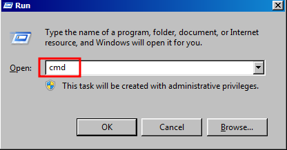 window + R 입력 후, cmd를 입력하여 관리자 권한으로 실행한다.