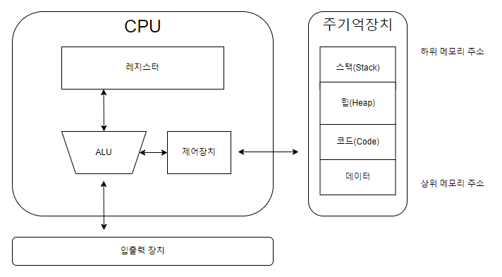 - 중앙 처리 장치(CPU)는 코드를 실행