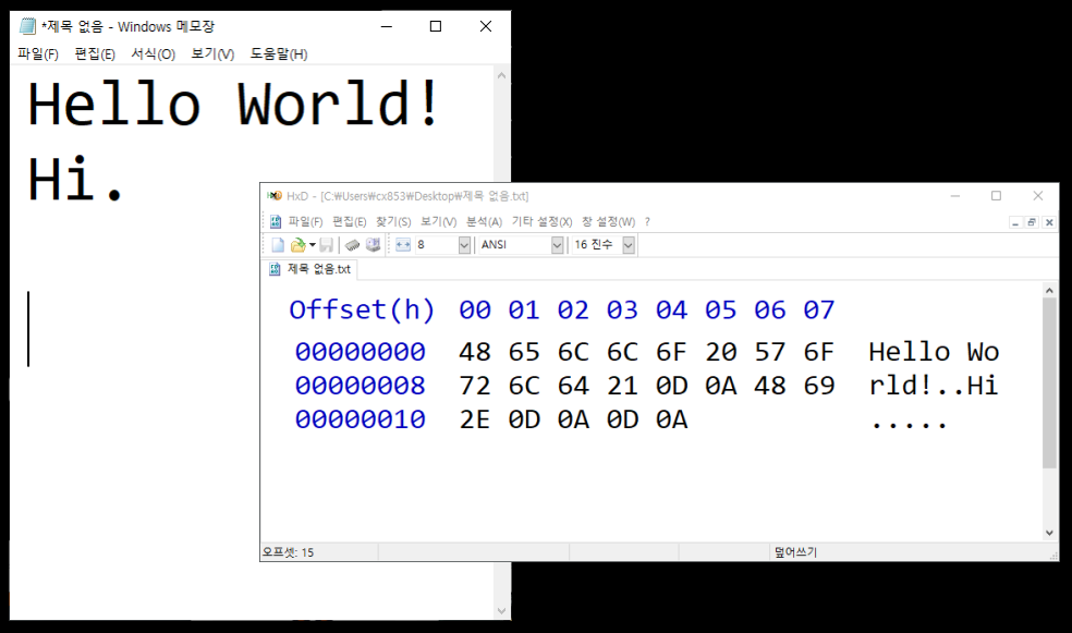 - 엔터도 문자다. = 0D 0A