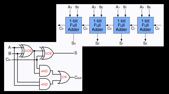 - A = 1, B = 1, C = 1 ( AND 연산결과 ), 1은 자리 올림(Carry)이다.