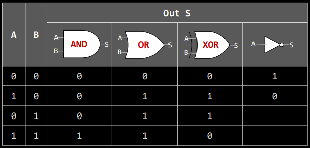 - XOR 조건 → A와 B 둘다 다를 때에만 출력 1이 발생됨, A와 B 둘다 같으면 0 발생.