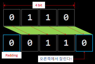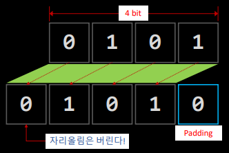 - 맨 오른쪽에 0이 채워진다.(Padding)