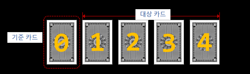 - 대상 카드1이 크면 기준 카드와 자리를 바꾼다.