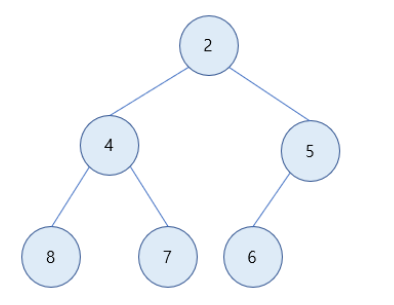1) 1을 최소 힙([2,4,5,8,7,6])에 삽입 시, 힙은 완전 이진 트리이므로 삽입 시에도 이를 유지해 완전 이진 트리를 만족하는 자리에 1 값이 삽입된다.