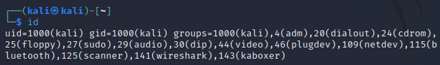 exit 를 입력하면 사용자가 다시 kali 로 전환된다.