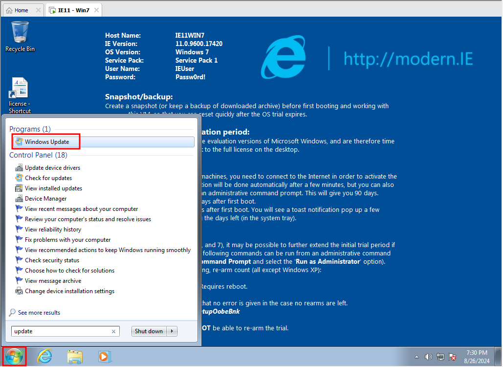 윈도우7 테스트 환경은 약 90 ~ 120일 정도 사용이 가능하다.