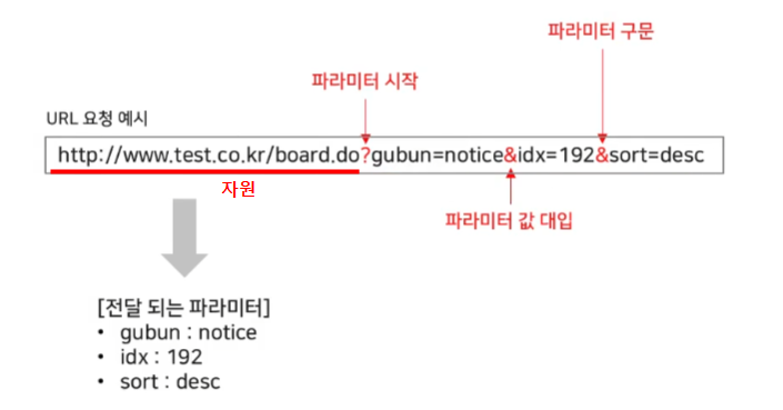 | ? | 파라미터가 시작된다는 것을 알려줌 (자원과 사용자 입력값 구분의 기준) |