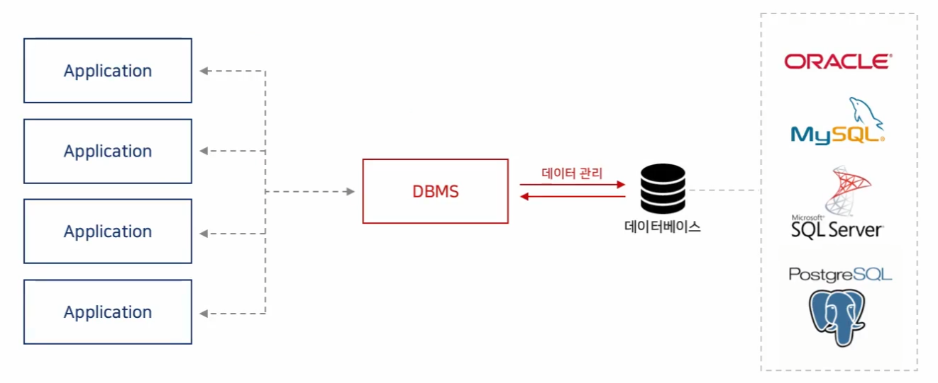 Application에서 DBMS로 SQL을 사용하여 요청을 한다.
