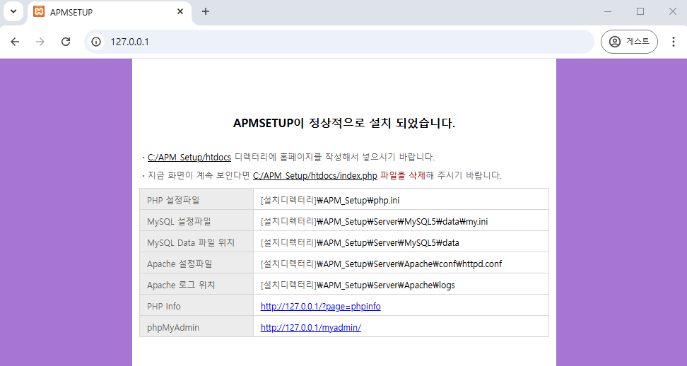 기존에 XAMPP를 APM Setup 대신 사용하여 MySQL 실습을 진행하였으나, XAMPP로 취약 환경 구축 시 강의와 환경이 달라 에러가 발생하여, 강의와 동일한 환경 구축을 위해서 APM Setup으로 환경 구축을 다시한다.