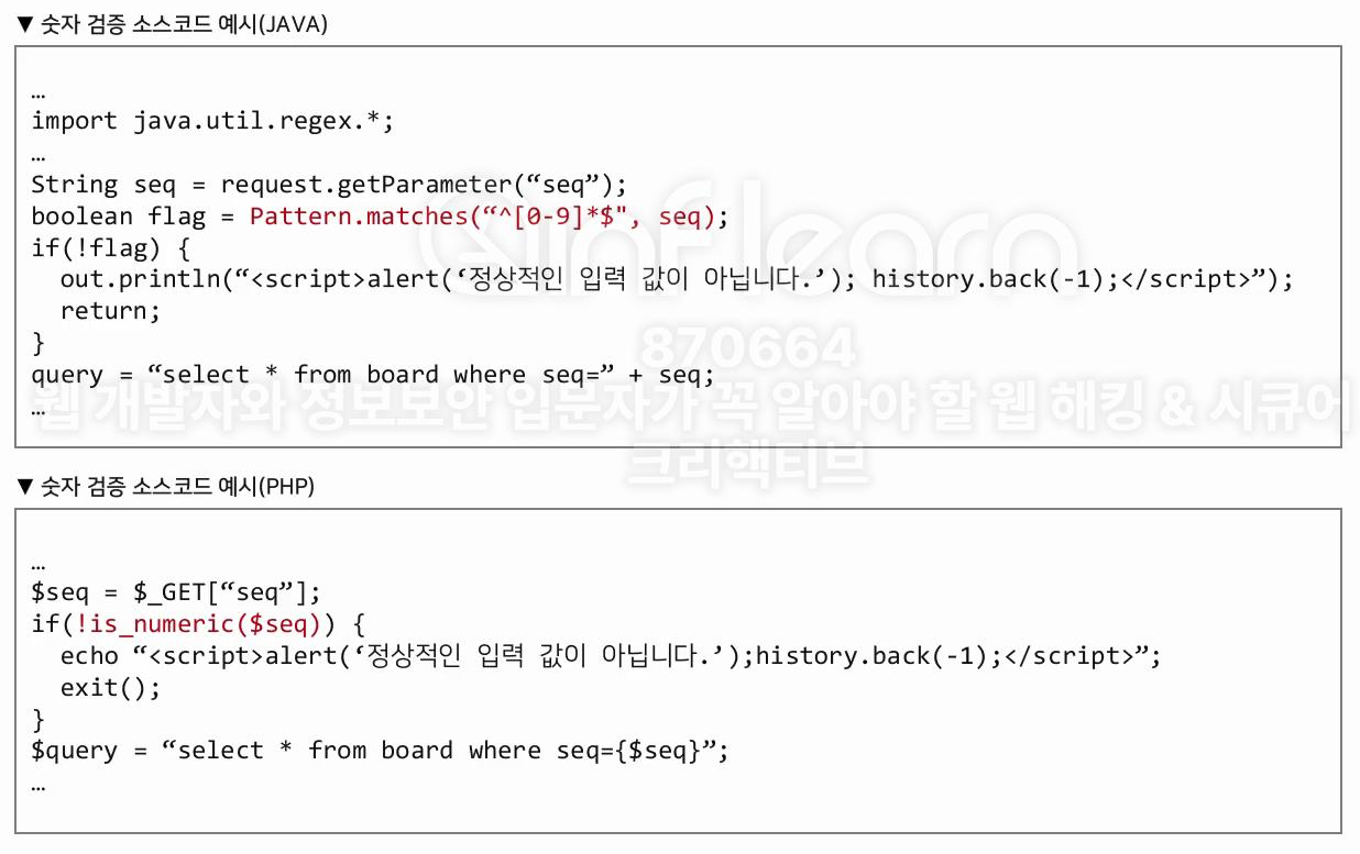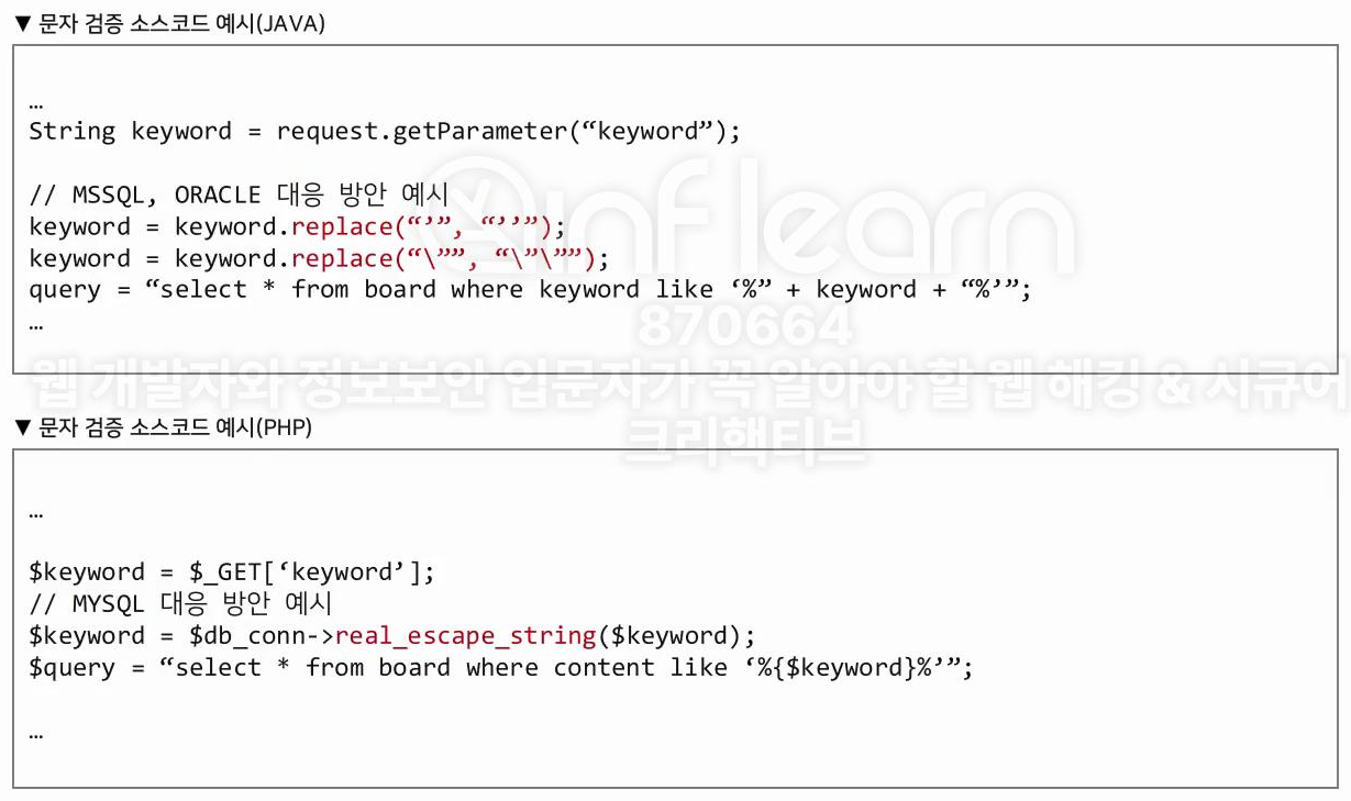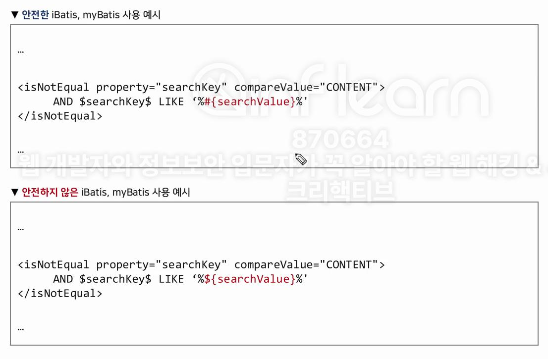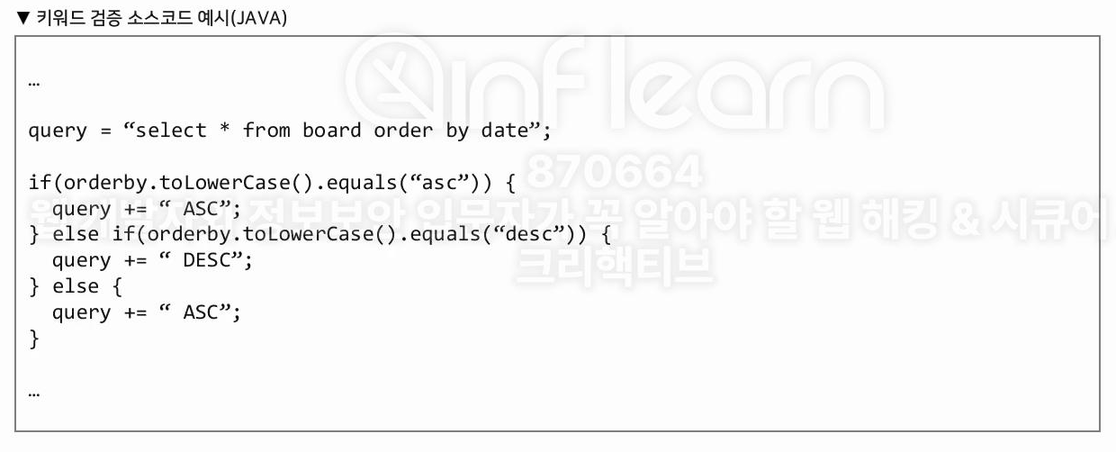 SQL 구문에 영향을 받는 파라미터를 확인해서 시큐어 코딩을 적용해야 한다.