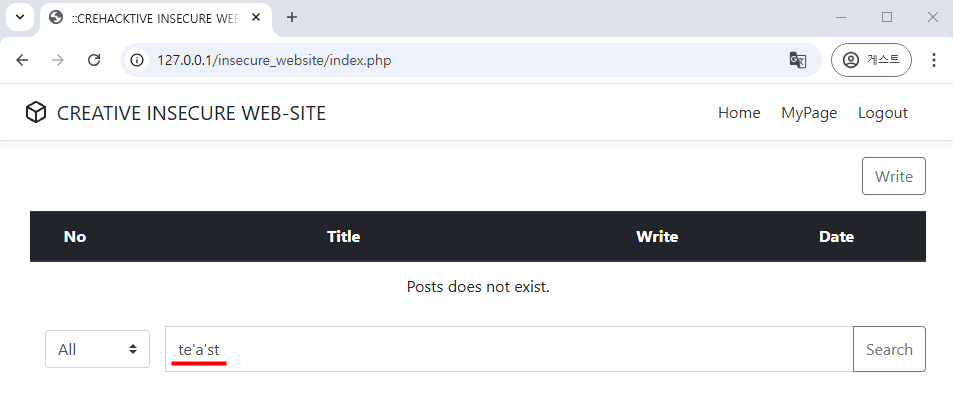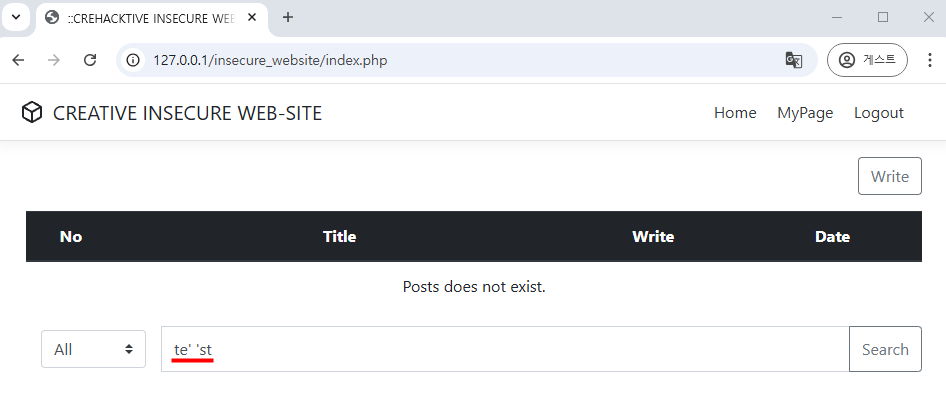수정 페이지의 $idx에는 숫자값 이외의 값은 입력이 불가하므로 SQL Injection에 안전하게 되었다.
