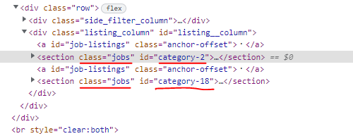jobs class 를 가지고 있는 모든 section 을 찾았다.
