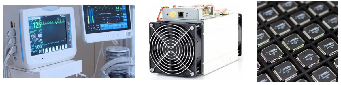- 산업용 설비, 자동차 ECU(Electronic Control Unit), 의료장비, 비트코인 채굴기, 데이터 센터 TPU(TensorFlow Processor Unit), AMP(Amplifier)등 특정 목적을 위해 대량 생산하는 반도체