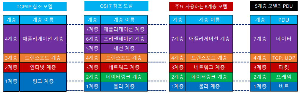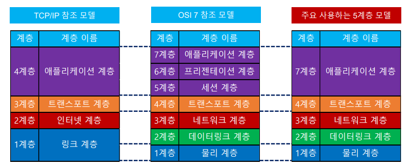 - 업계에서 주로 사용하는 계층은 5계층 모델