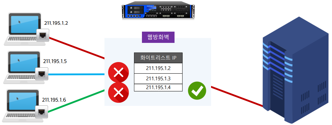 - 화이트리스트: 리스트에 있는 IP만 통신 허용