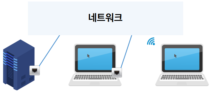 - 네트워크(Network) : Net + Work, 그물을 짜는 행위 → 그물처럼 연결된 상태를 뜻함