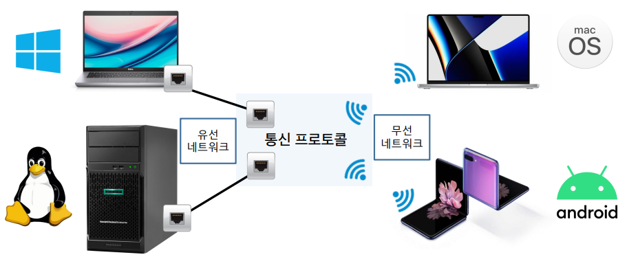 - 네트워크 기기: 계층 별로 존재하는 프로토콜에 따라 데이터를 전송하는 기기