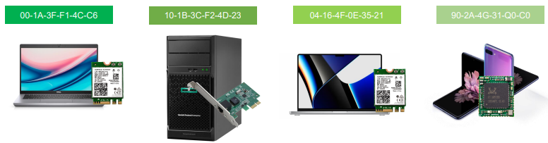 - MAC Address: Media Access Control Address, 컴퓨터들이 서로 데이터를 전송하기 위해 사용하는 물리적 주소로 NIC에 내장되어 있음. 그 기기만의 고유번호, 식별번호 등 기기를 구분하기 위한 주소로 사용됨