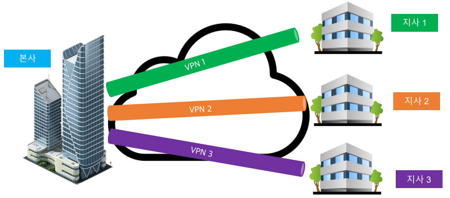- 기업 본사 LAN과 자사 LAN을 연결할 때 인터넷을 거치지 않고 이 두 네트워크만의 전용 WAN을 VPN으로 구성