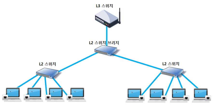 - LAN 환경에 L3 스위치를 추가해서 구성