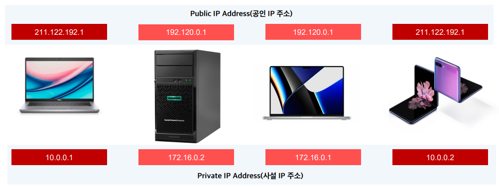 - Private IP Address: 사설 IP 주소, 같은 네트워크 안에서 통신하기 위해 사용(아파트 동 호수)