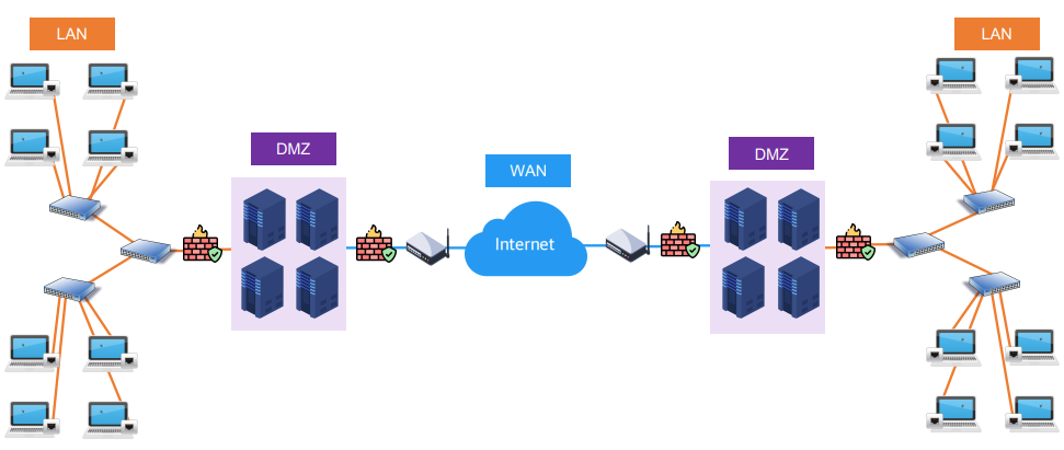 - 일반적인 LAN, WAN, DMZ 구성도