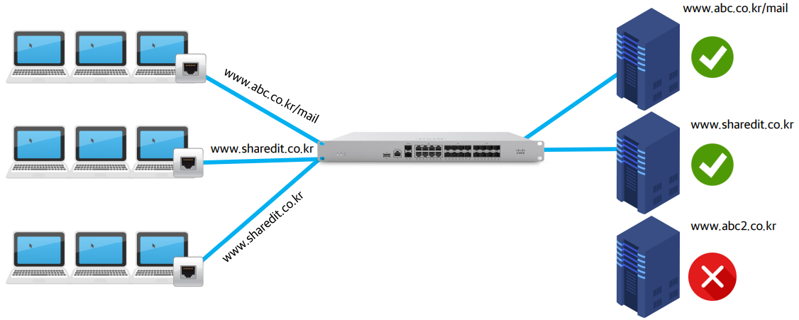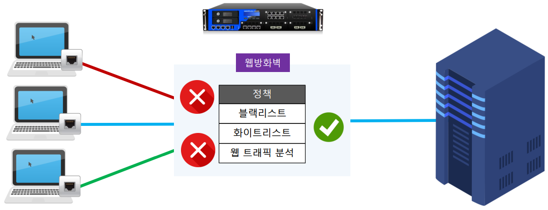 - 웹 트래픽 분석: 사용자가 서버로 보내는 트래픽을 분석하여 정책에 따라 조치함