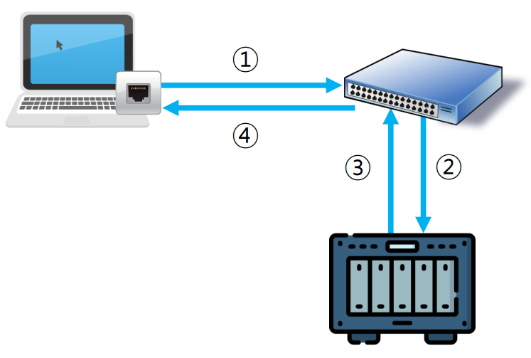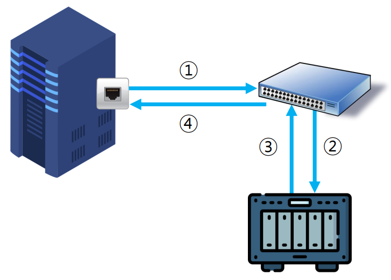 - 클라이언트가 서버에서 구동되는 애플리케이션의 데이터에 접근할 경우, 서버는 네트워크 스위치를 통해 NAS에 접근해서 데이터를 찾아 클라이언트에게 전달함