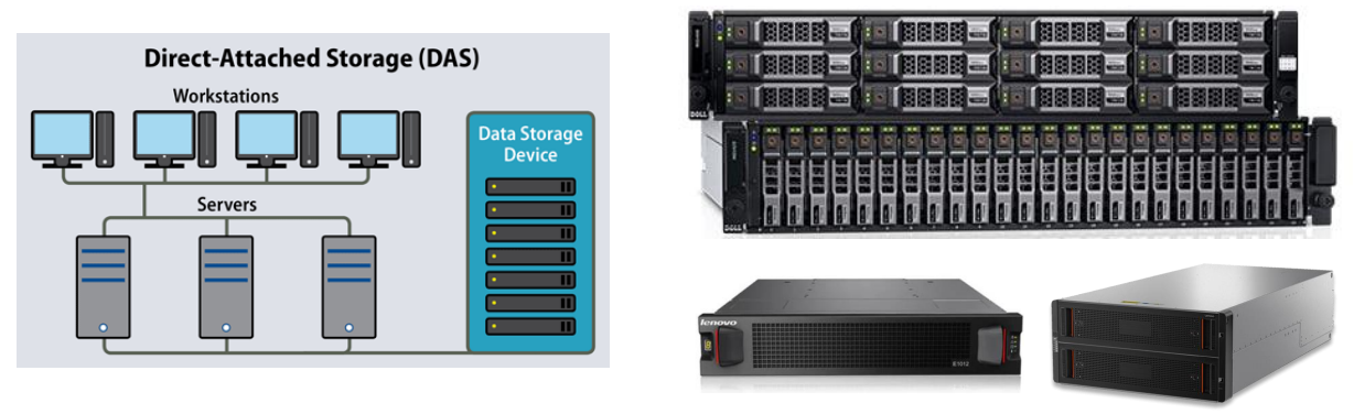 - 서버와 클라이언트가 전용 케이블로 연결한 스토리지, 서버와 직접 연결하는 외장하드