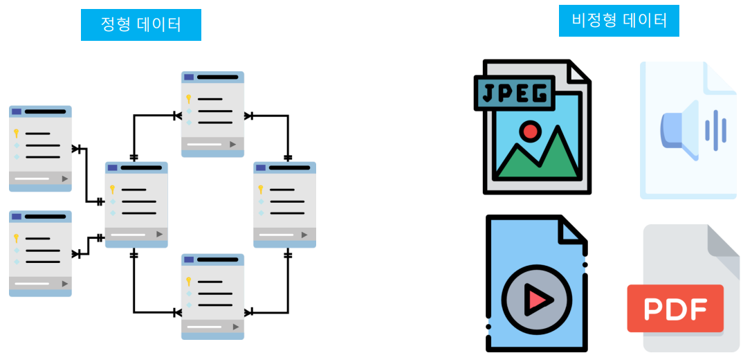 - 데이터 유형: 정형 데이터, 비정형 데이터