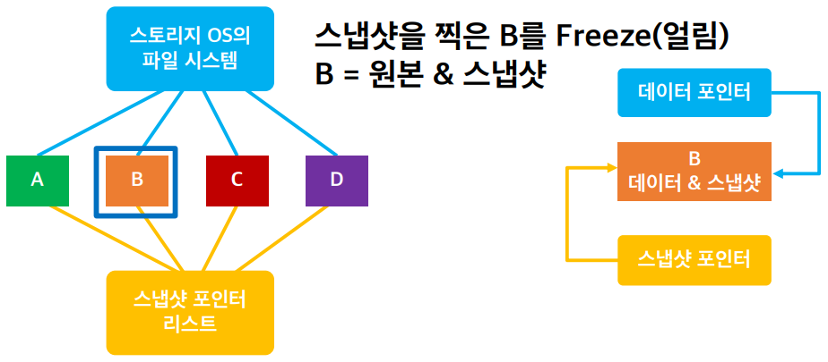 - 스냅샷 = 원본 데이터, 원본 데이터 B를 얼림