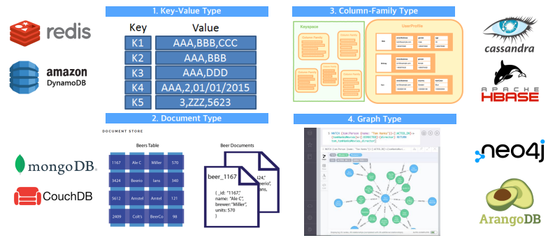 1. Key-Value Type: 키와 값을 직접적으로 연결하여 데이터를 저장하는 방식, 빠른 데이터 접근 속도를 제공