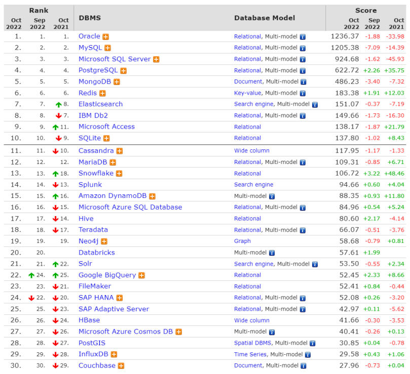 사이트 주소: https://db-engines.com/en/ranking