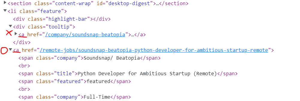 href 데이터를 추출한다. ( 링크를 저장하기 위해 ) - 결국 필요한건 링크에 대한 구인 정보다.