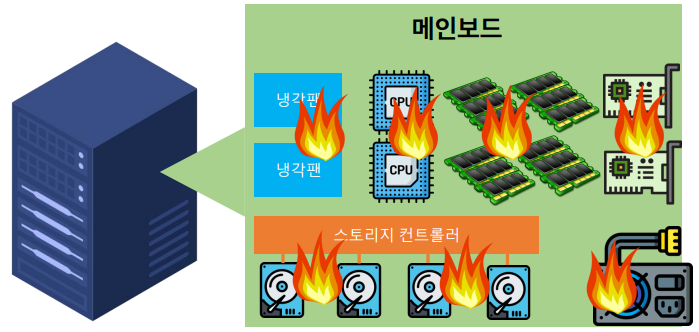- 서버 하드웨어 장애: 서버의 모든 요소 마다 장애가 발생할 수 있음