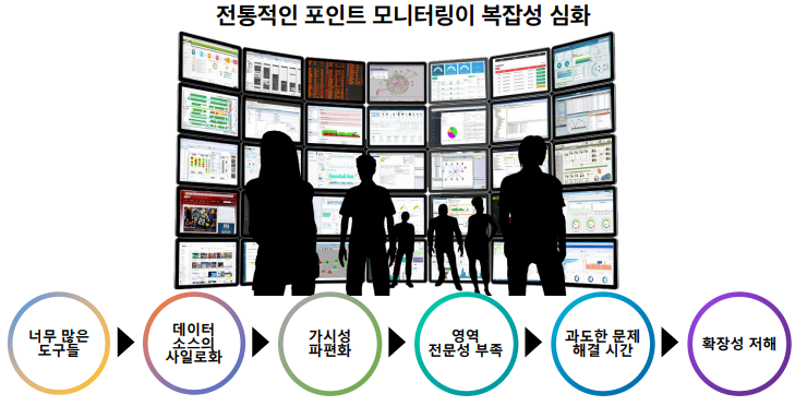 - 옵저버빌리티가 필요한 이유: 기존의 전통적인 포인트 모니터링 환경이 너무 복잡해짐