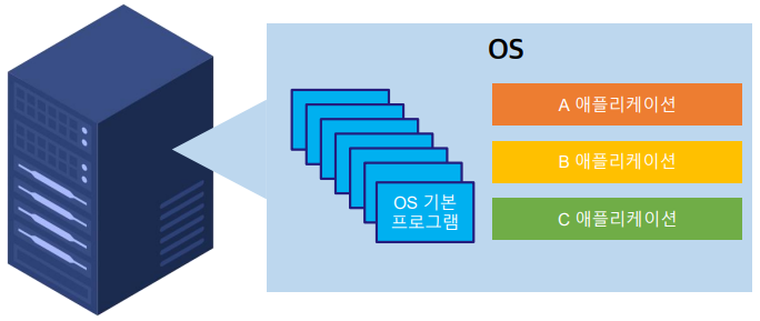 - 서버 소프트웨어 구성요소: OS, OS 기본 프로그램, 다양한 애플리케이션이 함께 동작함