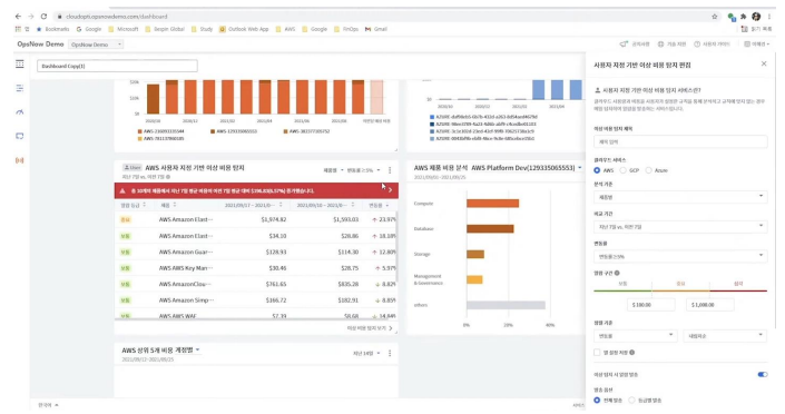 - 클라우드 비용 모니터링 플랫폼: 자원 사용량에 따라 과금되는 클라우드 서비스 비용을 상세히 보여줌