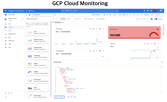 - 클라우드 모니터링: 클라우드 자원 사용 현황 및 운영하는 애플리케이션 상태를 보여줌