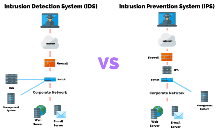 - IDS/IPS(Intrusion Detection System / Intrusion Prevention System): 네트워크 침입 탐지 및 방지 시스템