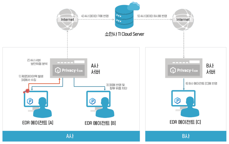 - 동일한 EDR 솔루션을 사용하는 고객끼리 TI 정보를 공유하여 방어 체계 업데이트