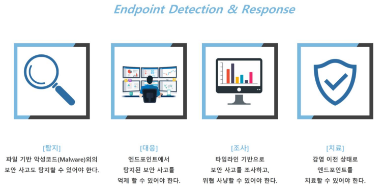 - 악성코드를 실시간으로 감지하고 분석 및 대응해서 피해확산을 막는 솔루션