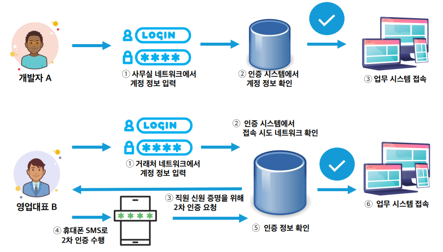 - 방화벽을 통과하더라도 각 시스템에 접근하는 행위에 대한 검증을 한번 더 진행
