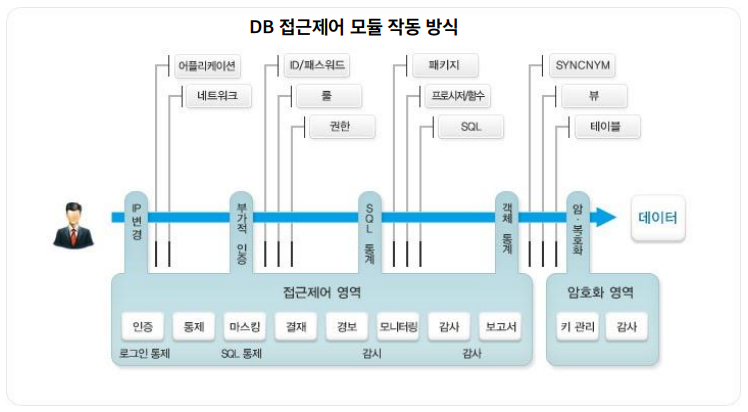 - DB 접근제어: 보안을 위해 데이터베이스 접근을 통제하고 관리하는 솔루션