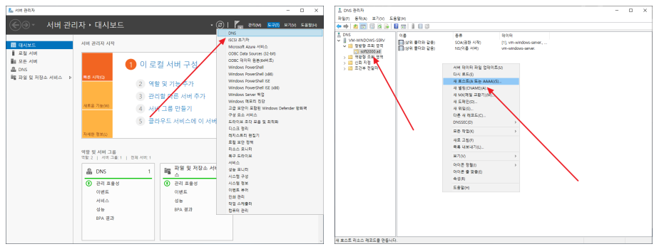- 온프레미스 IT 인프라에서는 서버 관리자 메뉴에서 DNS 설정 변경