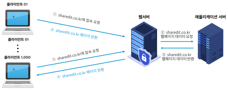 1. 웹 서버 앞단에 로드밸런서를 배치하여 트래픽 분산