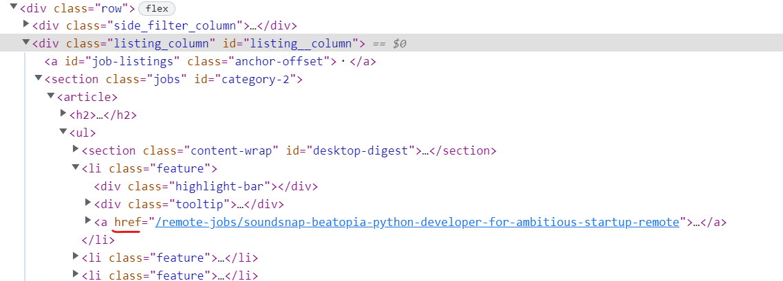 href 데이터를 추출한다. ( 링크를 저장하기 위해 ) - 결국 필요한건 링크에 대한 구인 정보다.
